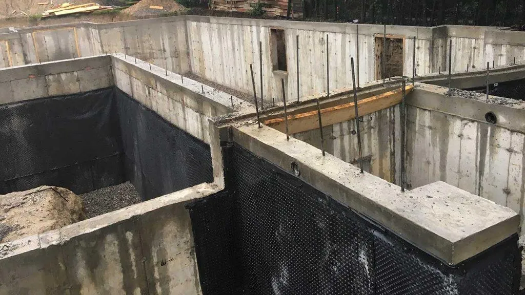 A footing is a reinforced concrete structure placed beneath a foundation to distribute building loads evenly into the ground, typically located below the frost line for long-term stability. The foundation, on the other hand, is built on top of the footing and supports walls or slabs directly. It provides structural integrity, moisture protection, and may include waterproofing and drainage features.